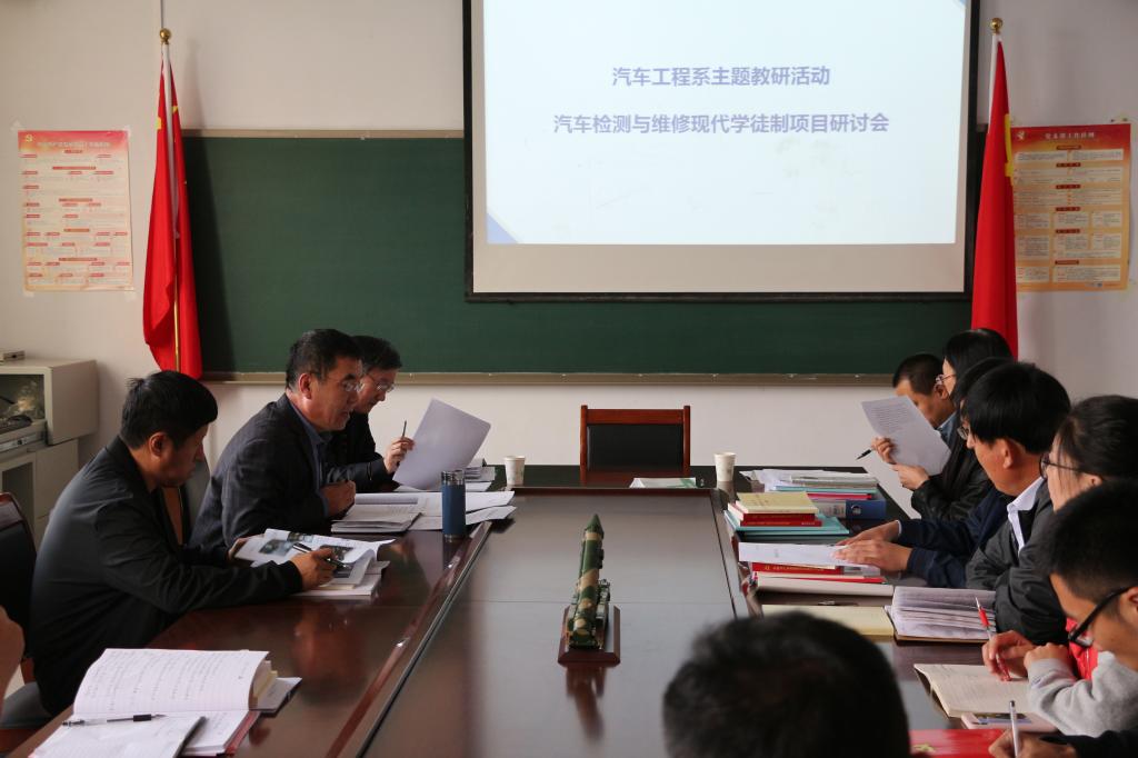 为了促进汽车现代学徒制项目高质量建设发展,汽车工程系汽车检测与维修教研室于10月17日在4302举行汽车检测与维修现代学徒制项目主题教研活动。教务处李培胜副处长、建筑工程系王广军副主任、教务处督导组及汽车工程系全体教师参加了本次教研活动。