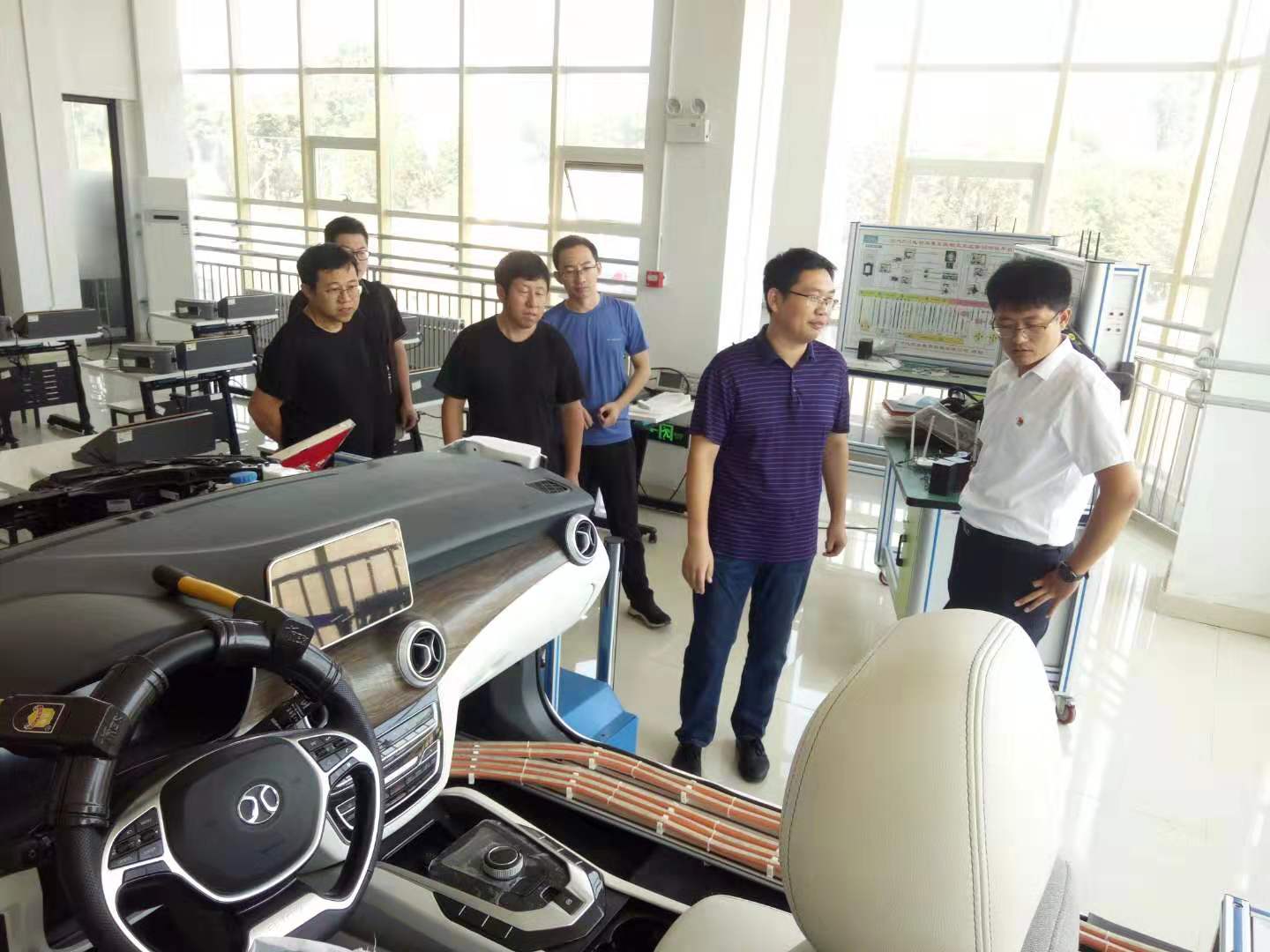 首先,张主任对来访客人到来表示热烈欢迎,并介绍汽车工程系自成立以来在专业建设、实训室建设、士官人才培养及技能竞赛等方面的情况,我系汽车教师能力大赛获奖教师介绍进行参加汽车专业教师技能大赛的经验。双方就汽车检测与维修技术、新能源汽车技术人才培养有关事宜进行深入交流与探讨。随后,在实训负责人带领下,王昊一行参观汽车工程实训中心、新能源实训中心等。