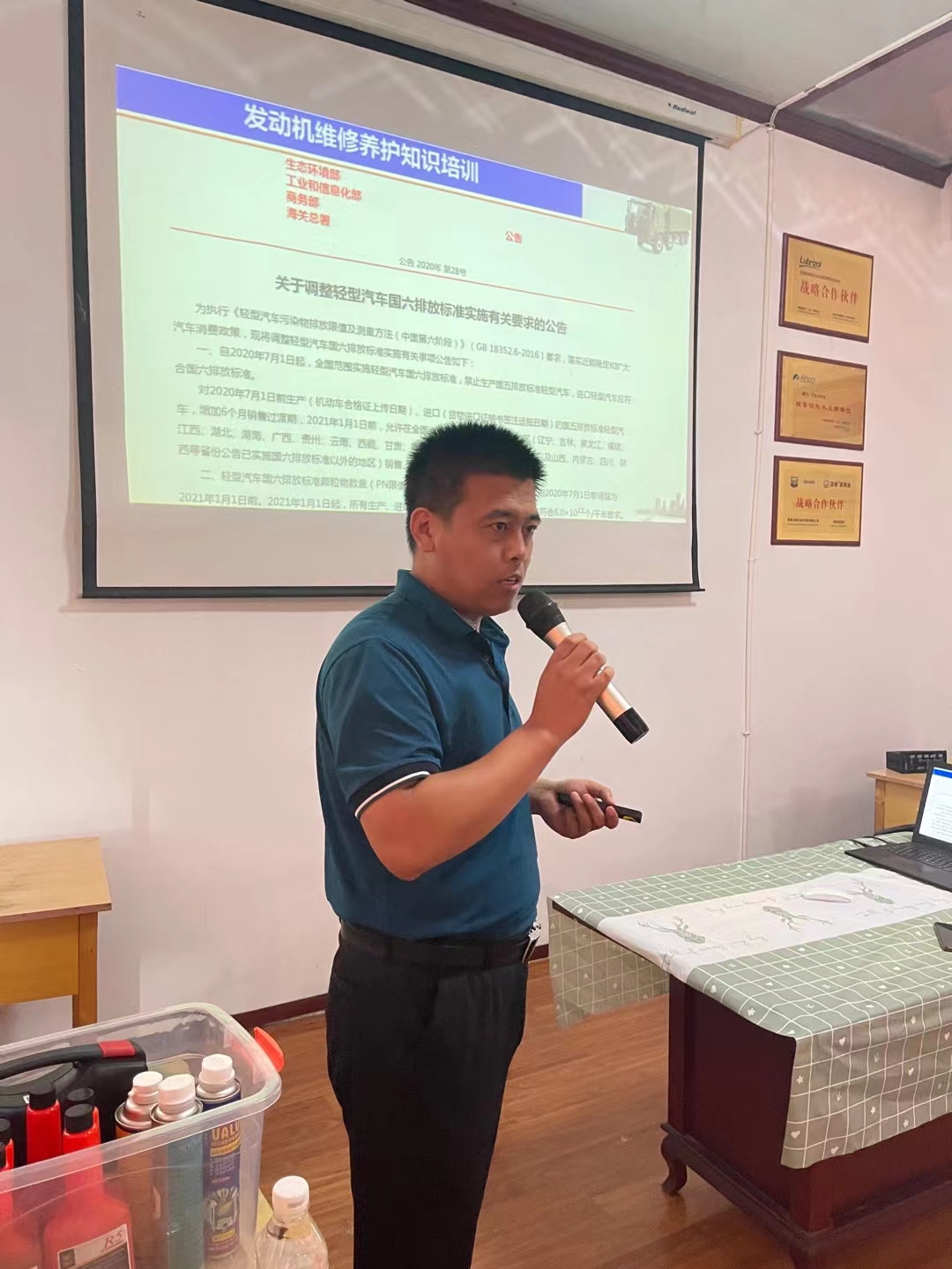 培训期间,汽车工程系专业教师分别讲授了柴油机和汽油机两类发动机的国六标准知识。柴油机项目以潍柴和康明斯柴油机为案例,讲述柴油发动机油耗与排放,对比分析欧洲排放标准与国家排放限值,详细分析从国一到国六柴油机分别需要哪些配置,重点解析满足国六柴油机排放标准的“高压共轨电喷+废气再循环+后处理燃油喷射+柴油氧化催化+颗粒捕捉器+尿素喷射+催化还原系统+氨逃逸催化器”系统结构常见故障及维修注意事项;汽油机项目以发动机燃烧技术为主线,分析汽车污染物排放限值,讲述汽油发动机工作原理,以奥迪可变气门升程系统AVS、本田可变气门控制机构VTEC、丰田智能可变气门正时系统VVT为例,解析发动机配气机构、获得最佳空燃比,分析汽油机三元催化器、颗粒捕捉器、氧传感器等后处理系统,讲解发动机润滑的重要性和润滑油损耗的主要原因。
