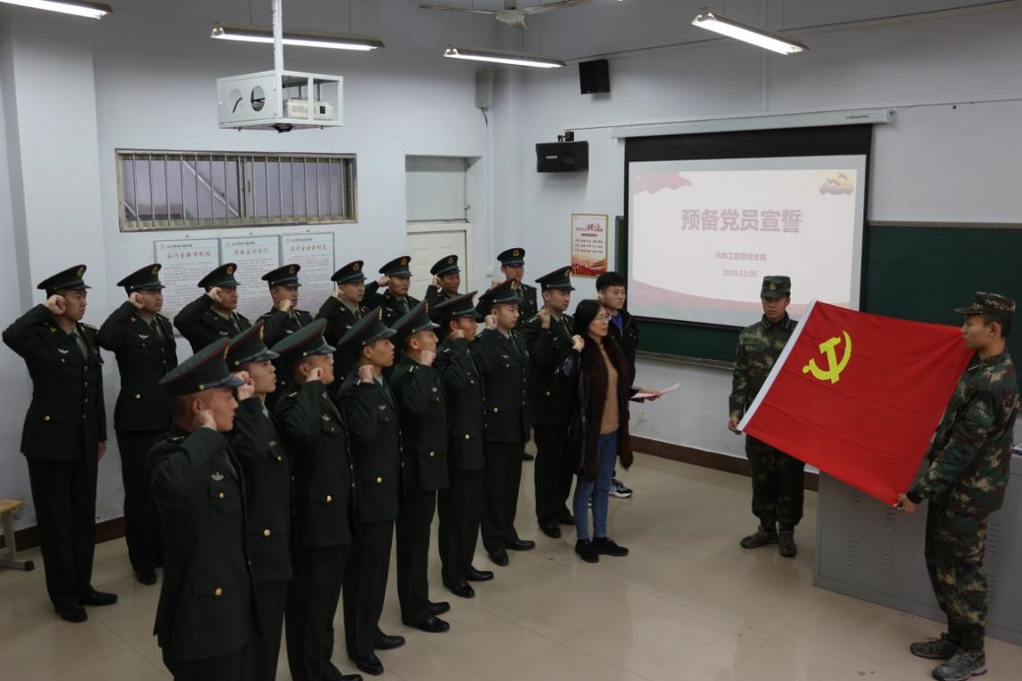 会后,汽车工程系党支部新接收的17名预备党员在党旗前进行了宣誓。