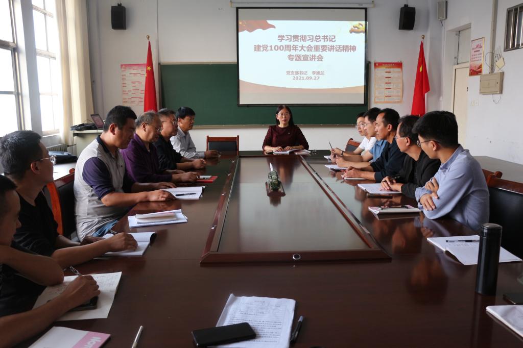 宣讲会上,李旭兰带领全体党员教师认真学习了习近平总书记“七一”重要讲话精神,她指出习近平总书记“七一”重要讲话,气势磅礴、博大精深,统揽全局、震撼人心,闪耀着马克思主义真理光辉,贯穿着解放思想、实事求是、与时俱进的思想路线,是对习近平新时代中国特色社会主义思想的丰富完善。她要求全体教师要把学习习近平总书记“七一”重要讲话精神同总结经验、联系实际、推动工作结合起来,把学习的成效不断转化为工作的动力和实效。