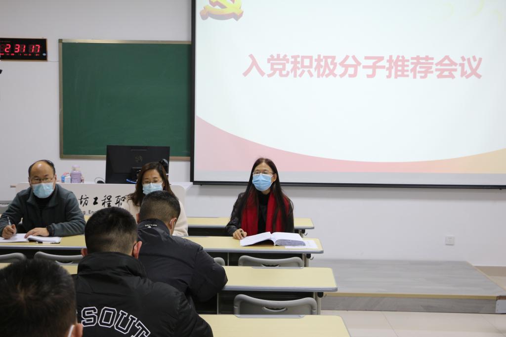 大会第二阶段,按照学院党委的统一部署,推荐了2022年入党积极分子人选。会上,对具备入党积极分子条件的入党申请人进行无记名投票推荐。根据投票结果,初步确定了王文新等4名学生入党积极分子,并提交支委会研究。