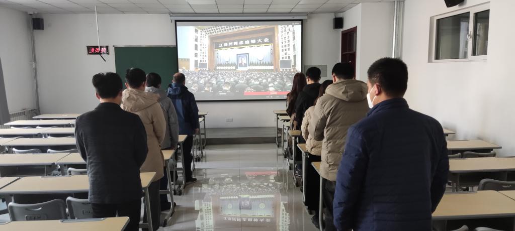 集体学习后,大家观看了江泽民同志追悼大会。党支部书记李旭兰强调,全体党员务必继承江泽民同志的遗志,更加自觉地团结在以习近平同志为核心的党中央周围,为全面建设社会主义现代化国家、全面推进中华民族伟大复兴而团结奋斗。