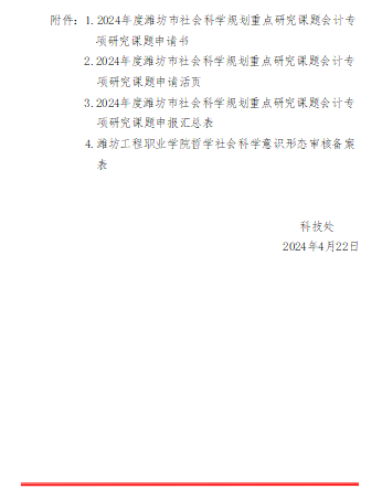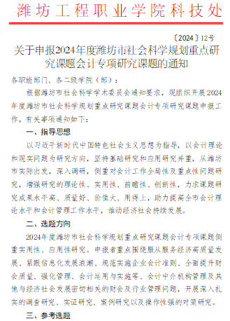 关于申报2024年度潍坊市社会科学规划重点研究课题会计专项研究课题的通知