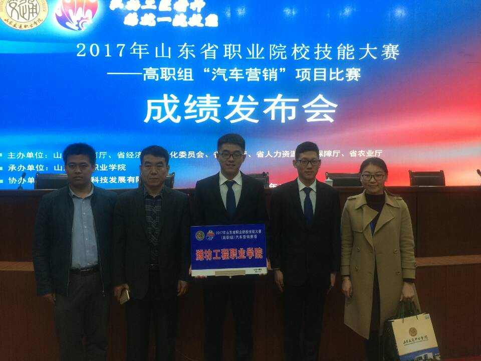 2017年11月10日至12日,由山东省教育厅等五部门主办的2017年山东省职业院校技能大赛(高职组)“汽车营销”赛项在山东交通职业学院举行,我院汽车工程系教师郭风泉、黄凯指导的宗伟、王靖同学组成的代表队喜获三等奖。