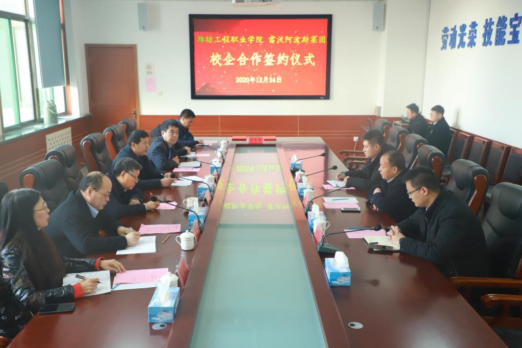 12月24日,汽车工程系与雷沃阿波斯校企合作项目签约仪式在海岱阁220会议室举行。院长高立伯,雷沃阿波斯集团副总经理高丕泉出席签约仪式。学院相关部门负责人,雷沃阿波斯集团相关人员参加会议。会议由赵庆松主持。